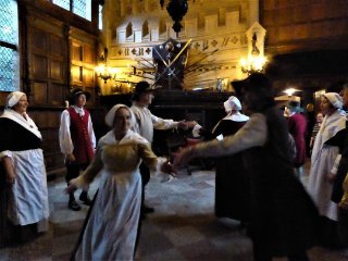 Galliard English Folk Dancers performing at Speke Hall, Liverpool. A cold frosty day ideal for our warm costumes.