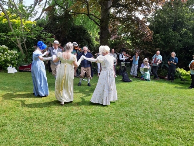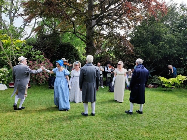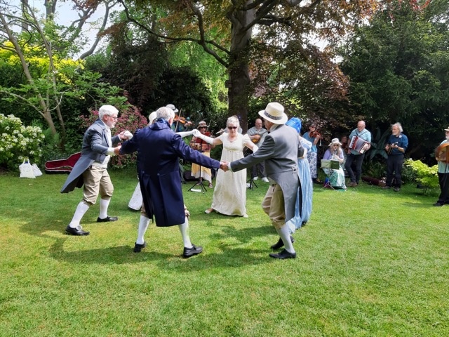 A great family day out celebrating Englishness and keeping our national heritage alive dancing in Regency costume outside at the Garden Festival at Oxton